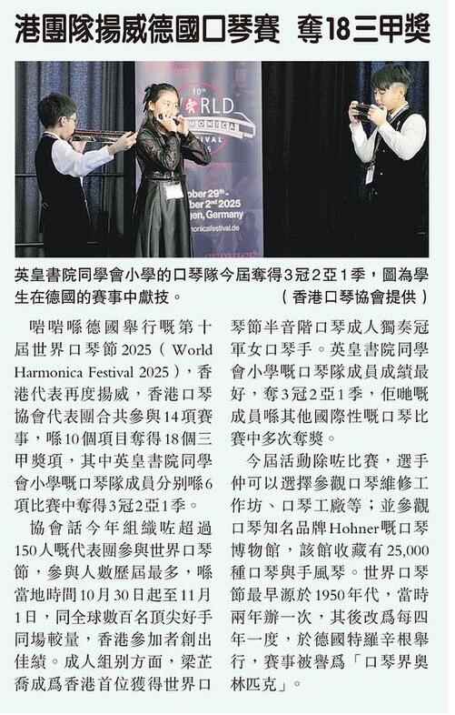 【香港電台網站:第四台 |Arts News 藝壇快訊】香港口琴協會在「世界口琴節2025」報捷
